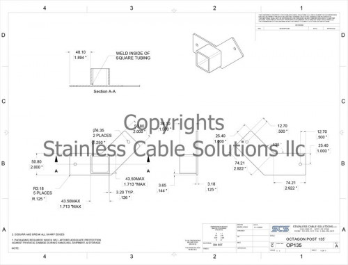 Installing an octagon railing system or even more unique 135 degree turns? The OP135 stainless steel post top from SCS installs easily and is designed to last a lifetime.
