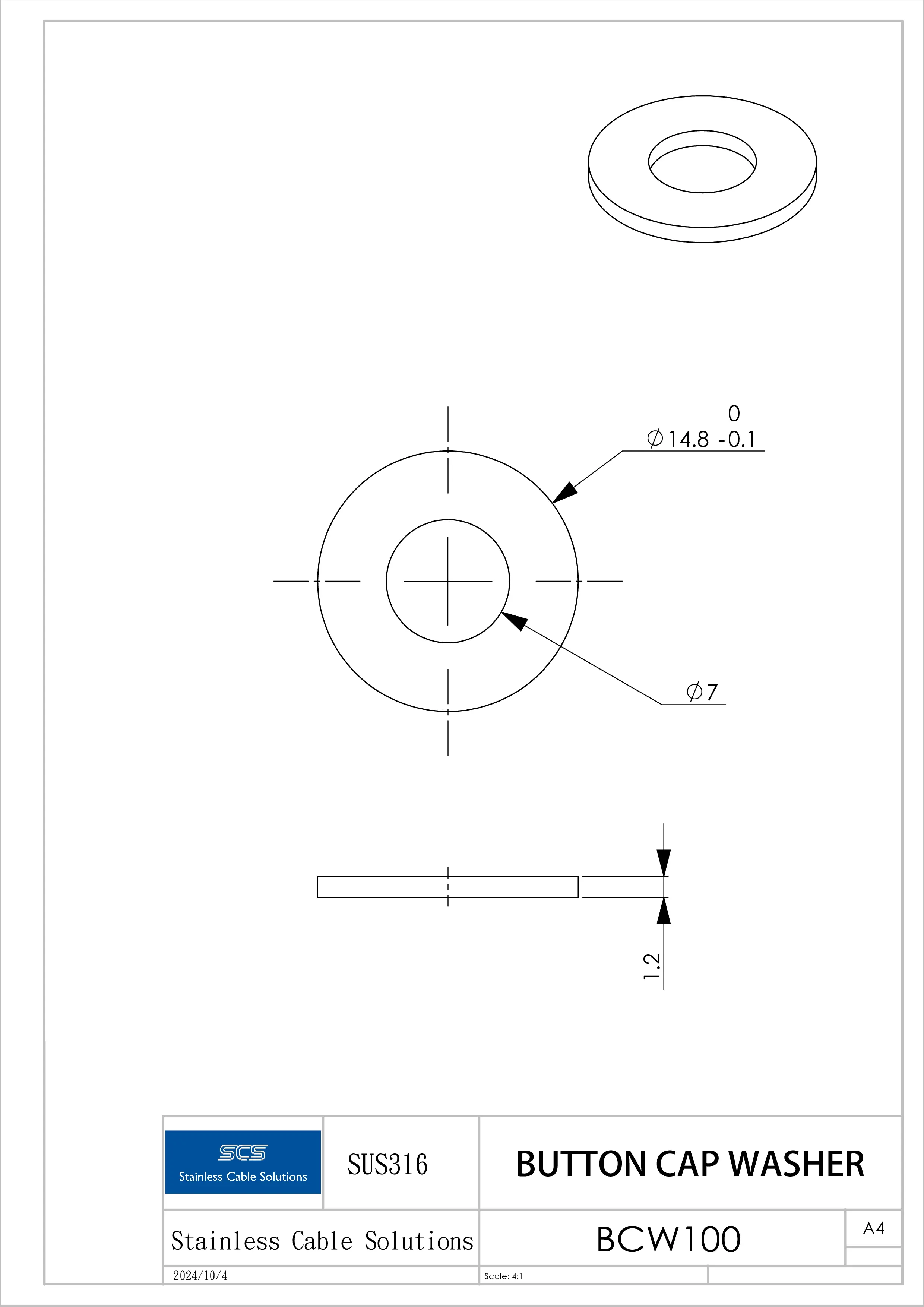 Stainless Cable Solutions has knocked this design out of the park! The new Button Cap Washer is hidden under the new Button Cap. The edge of the washer is not showing when installed. Now you can have just a clean Button Cap that hides both the edge of the washer and the tensioning nut. The cleanest finish cap in the industry.