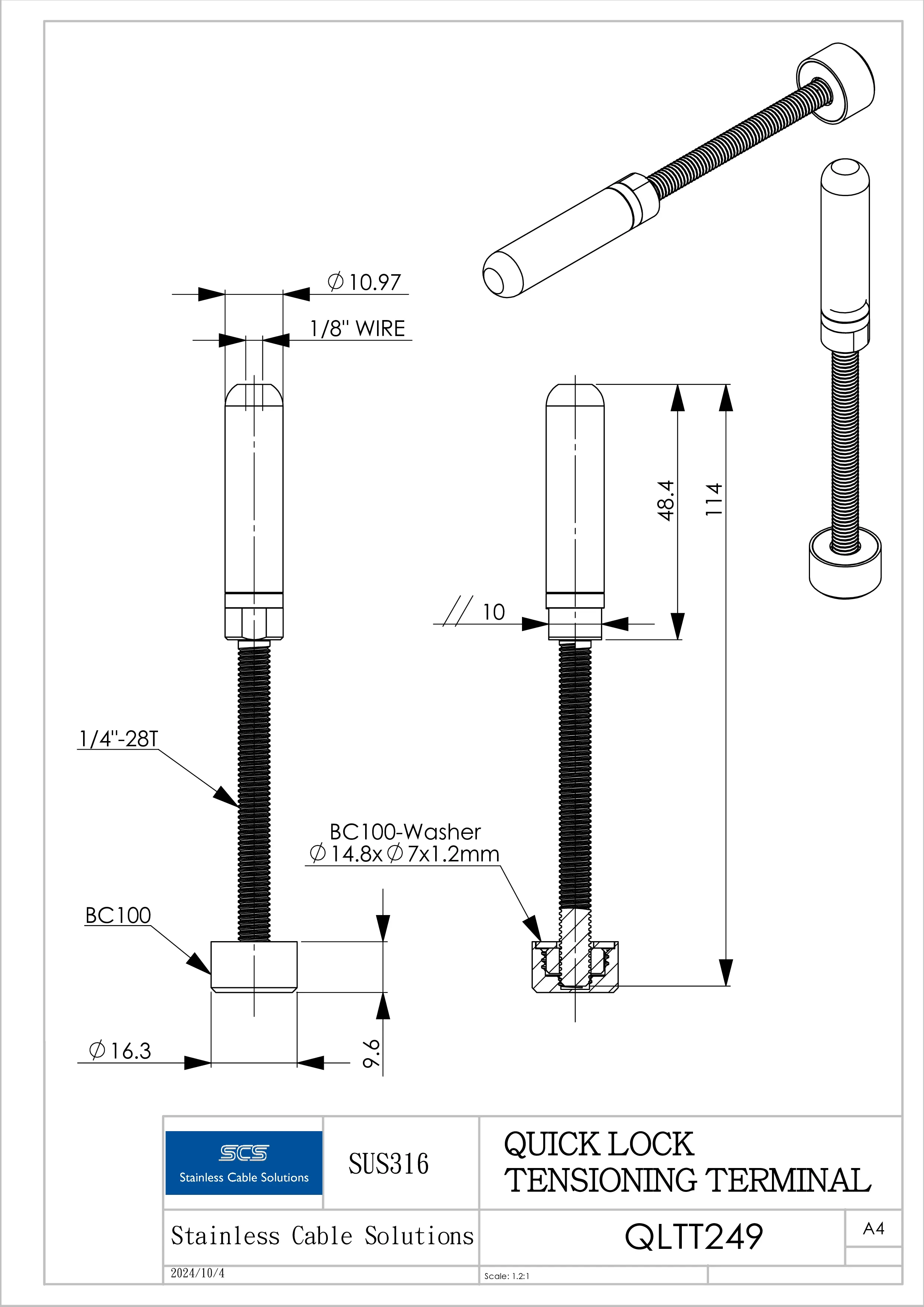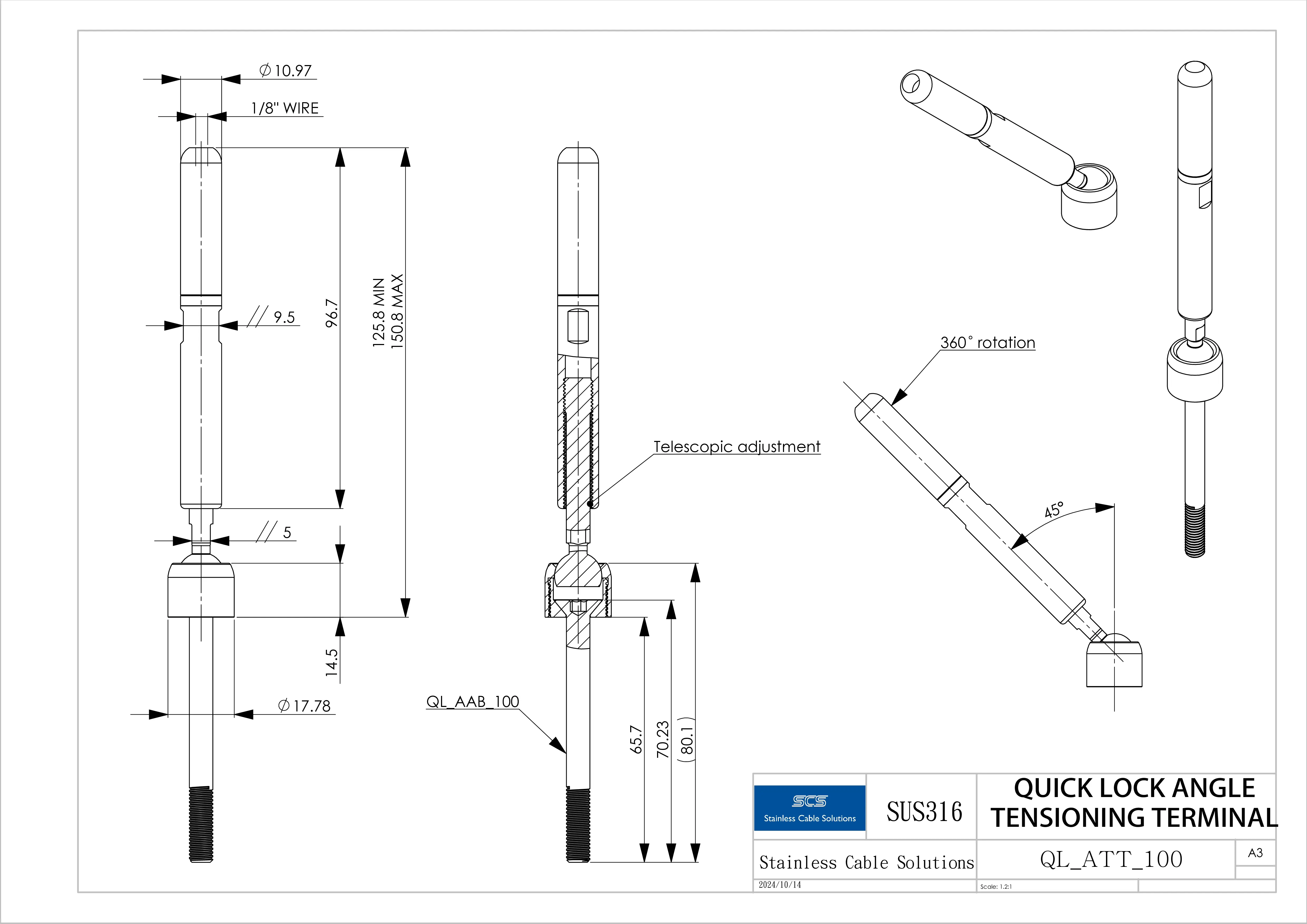 Stainless Cable Solutions is proud to announce our new line of Quick Lock™ swageless hardware. This hardware is specifically designed and engineered to work perfectly with all SCS aluminum railing systems. Additionally, it is made of high-quality 316 stainless steel, which ensures years of maintenance-free use.